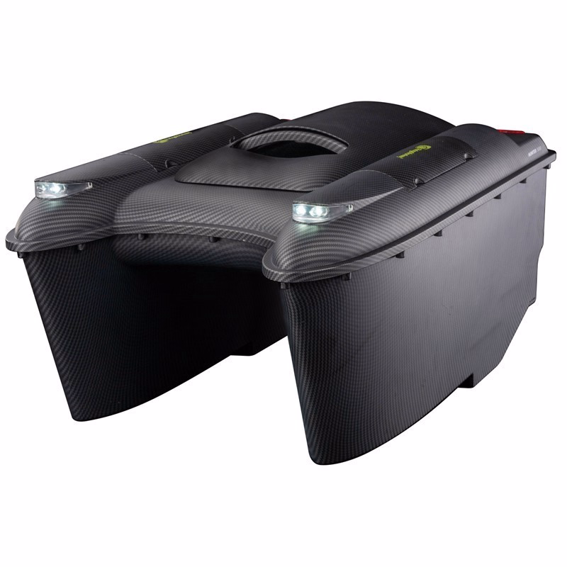 Malgré sa capacité d'appât de plus de 3kg, la conception extérieure hydrodynamique de la coque à effet carbone permet au Hunter 3000 de glisser sans effort dans l'eau. Le mécanisme de chargement par le haut très apprécié est désormais doté d'une trémie à ouverture électromagnétique pour une descente fiable, précise et sûre à chaque fois. Chargez simplement vos appâts dans la trémie et verrouillez votre montage en place avec le bras de fixation avant de mettre le bateau à l'eau à l'aide de la poignée ergonomique. Le couvercle magnétique inclus pour la trémie se fixe solidement sur le dessus du bateau pour protéger vos appâts et montages exposés contre la faune sauvage, les intempéries et les débris lors des traversées vers le spot. Un indicateur de charge à LED assure une visibilité permanente du niveau de la batterie, tandis qu'un système de feux avant et arrière puissants facilite l'orientation du bateau à distance. Un nouveau mode « plein phare » offre un faisceau concentré renforcé, idéal pour éclairer une zone précise, naviguer à longue distance ou même localiser le bateau par faible luminosité, notamment en cas de brouillard ou de brume.