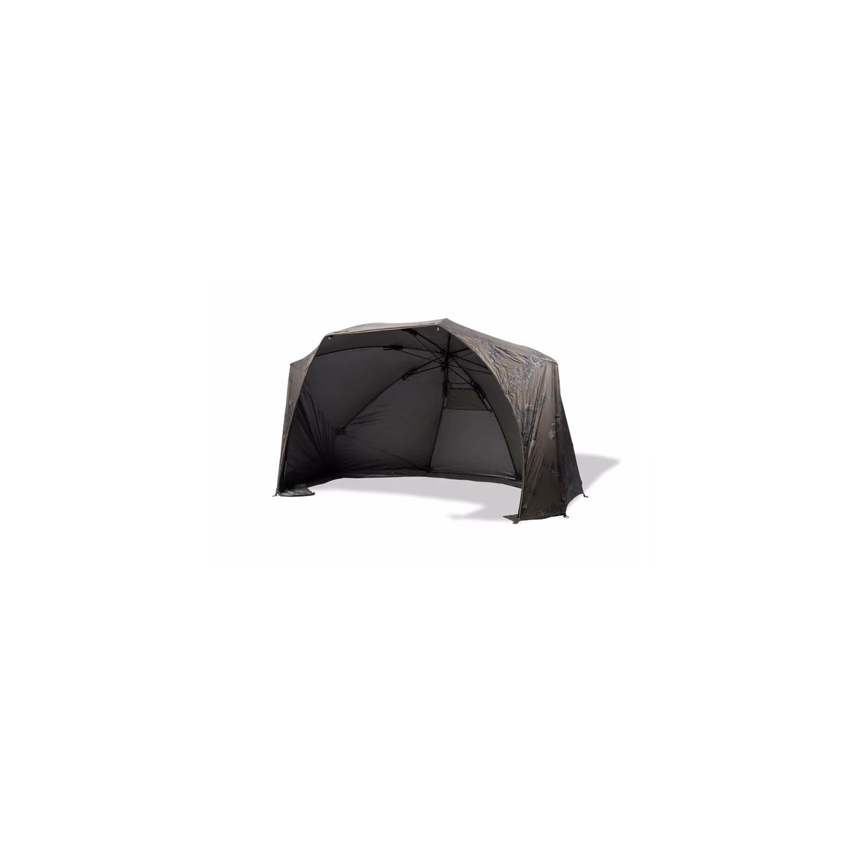 Les panneaux frontaux sont rallongés par rapport aux côtés classiques des autres brolly, offrant une protection proche de celle d’un Titan Hide ou des mythiques Groundhog brolly du début des années 2000. Ce surplus de protection permet de placer son bedchair au fond du brolly, quasiment à l’abri même sous une pluie battante. Chaque panneau peut être roulé et fixé indépendamment à l’aide d’attaches élastiques pour dégager la vue par temps sec.